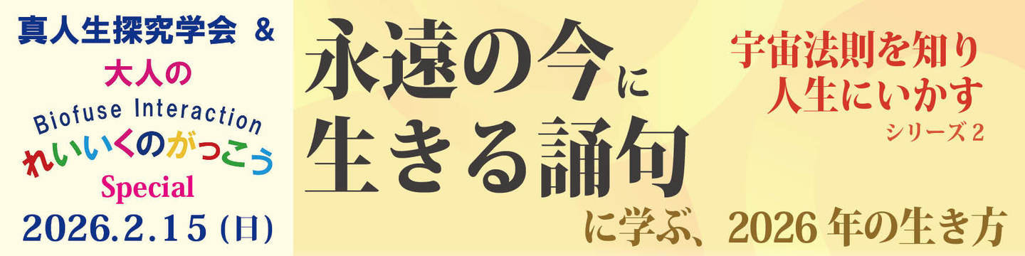 「真人生探究学会」終了後、同じ会場で「『永遠の今に生きる誦句』に学ぶ、2026年の生き方」が行われます。