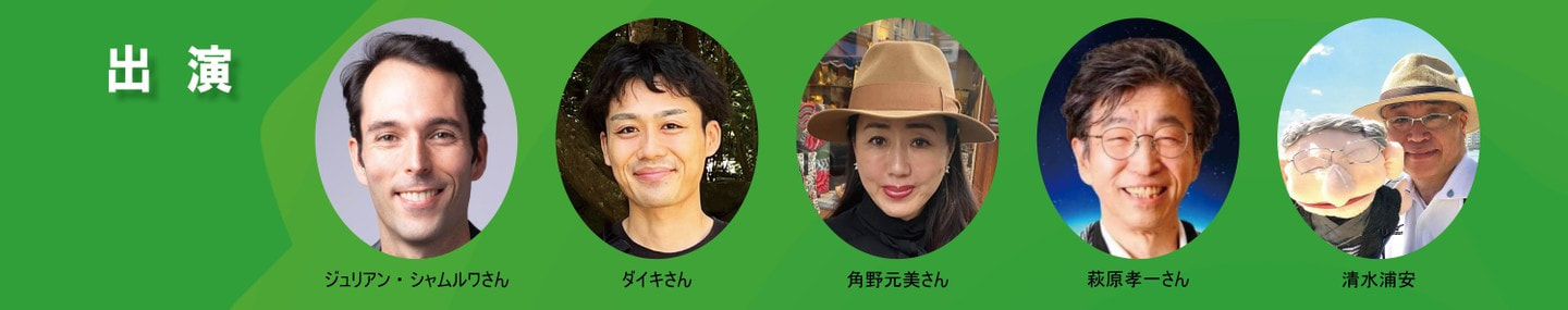 ゲストにジュリアン・シャムルワさん、ダイキさん、角野元美さん、萩原孝一さんをお迎えして、宇宙意識で生きる新たな時代に向けてお話をうかがいます。